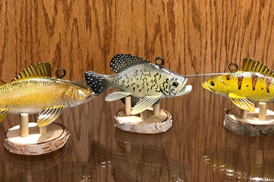 NDCA's twelfth annual Special Edition Ornament is now available. Rick and Connie Whittier of Lidgerwood, ND, were commissioned to create one-of-a-kind functional spear fishing decoy holiday ornaments. The limited-edition decoy ornaments are hand-carved and individually painted by Rick. These three hyper-realistic species have hooks for use as a tree ornament. They make wonderful gifts or decor for art lovers and fish enthusiasts of all kinds! Each fish (4.5-5.5” in length) is a limited edition, numbered and signed by the artist.